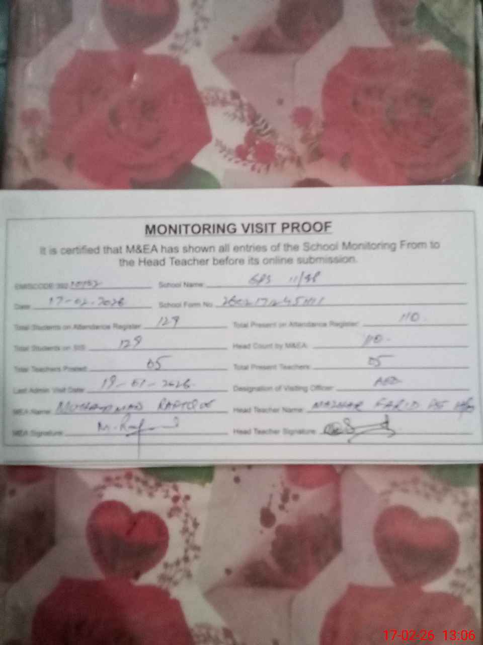 | EMIS Code: 39210102 | Name of School: GPS 11/SP P.O 8/S.P PAKPATTAN | |||