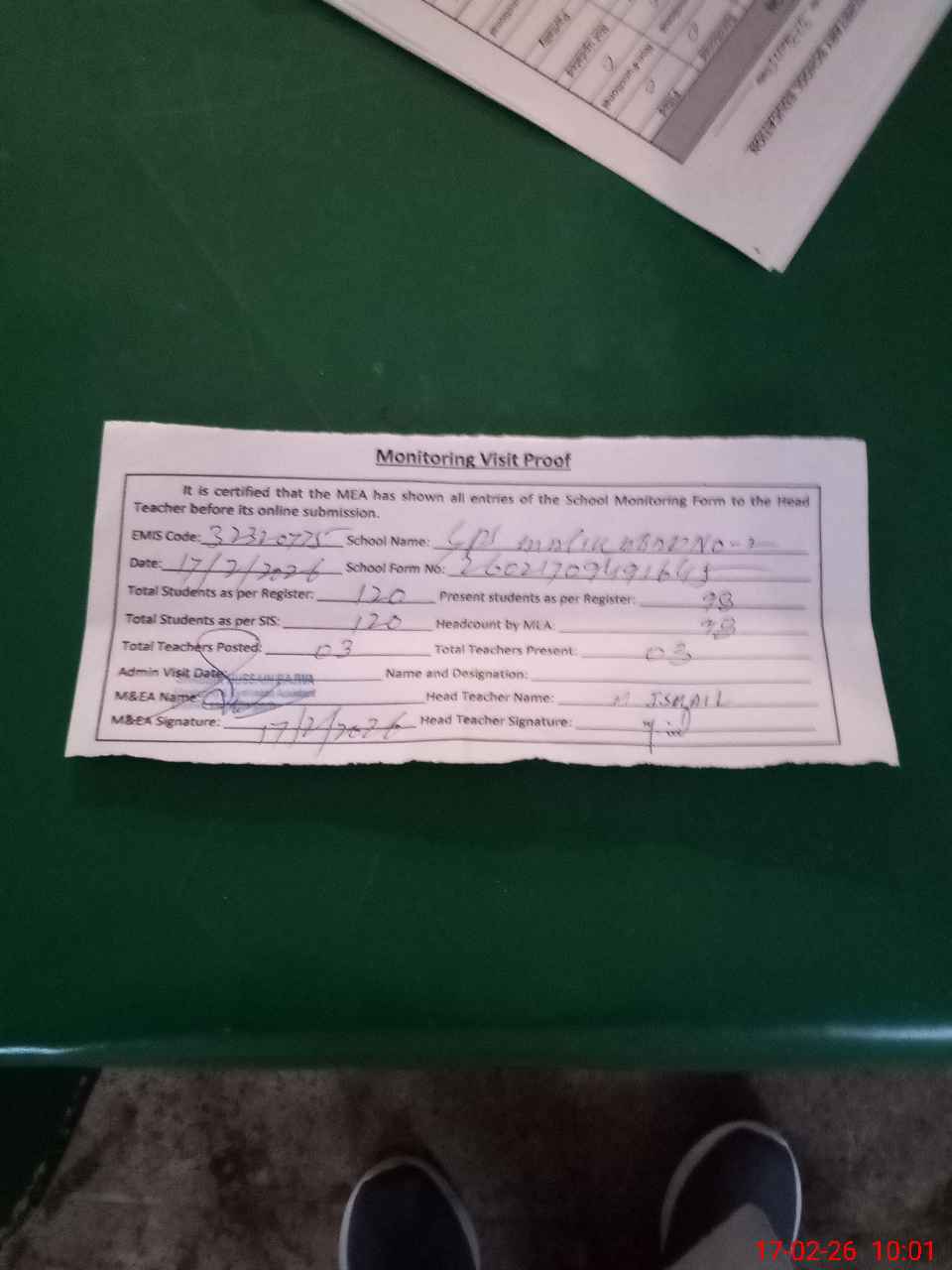 | EMIS Code: 32320775 | Name of School: GPS MALIK ABAD NO. 2 | |||