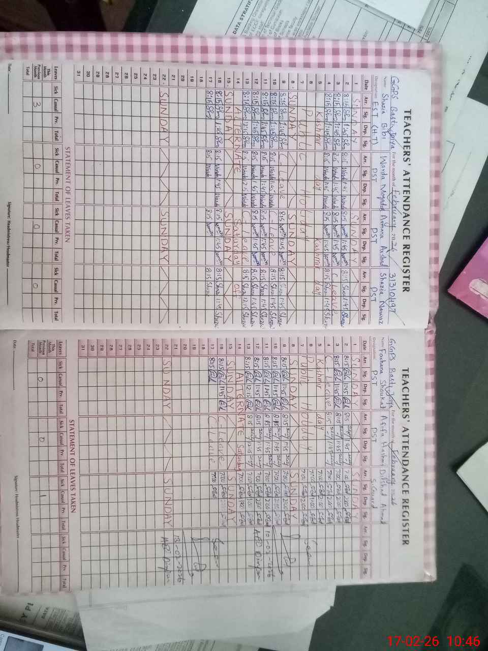 | Leave | Duty | Absent | Maternity | Medical | Ex- Pak |
