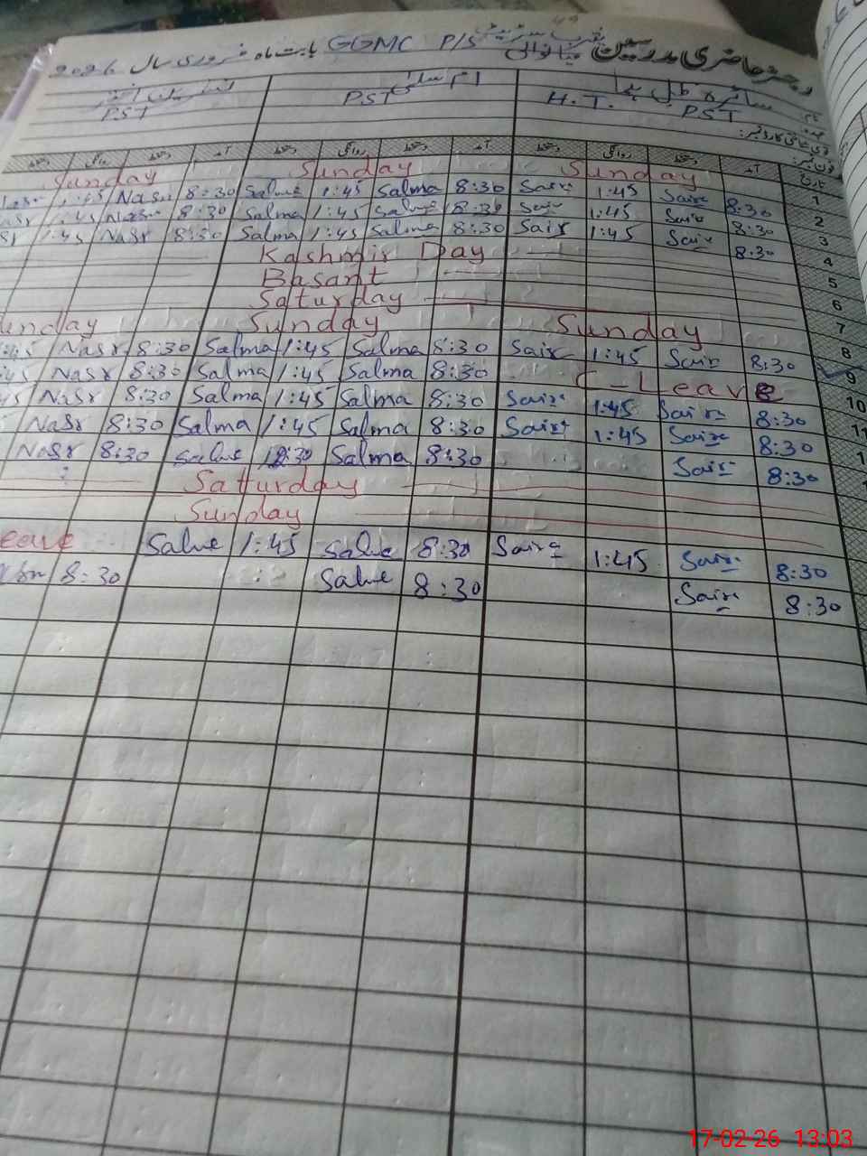 | Leave | Duty | Absent | Maternity | Medical | Ex- Pak |