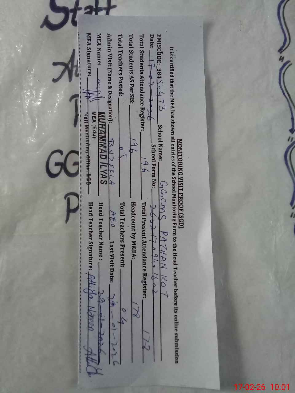 | EMIS Code: 38450473 | Name of School: GGCMS PATHAN KOT | |||