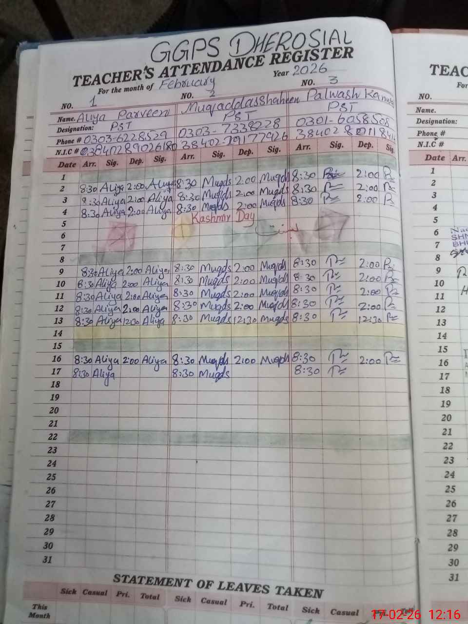 | Name: AL**** PA**** Designation: (School Headmaster's/Headmistress's) PTC/JV Phone/Cell Number: 03**** |
