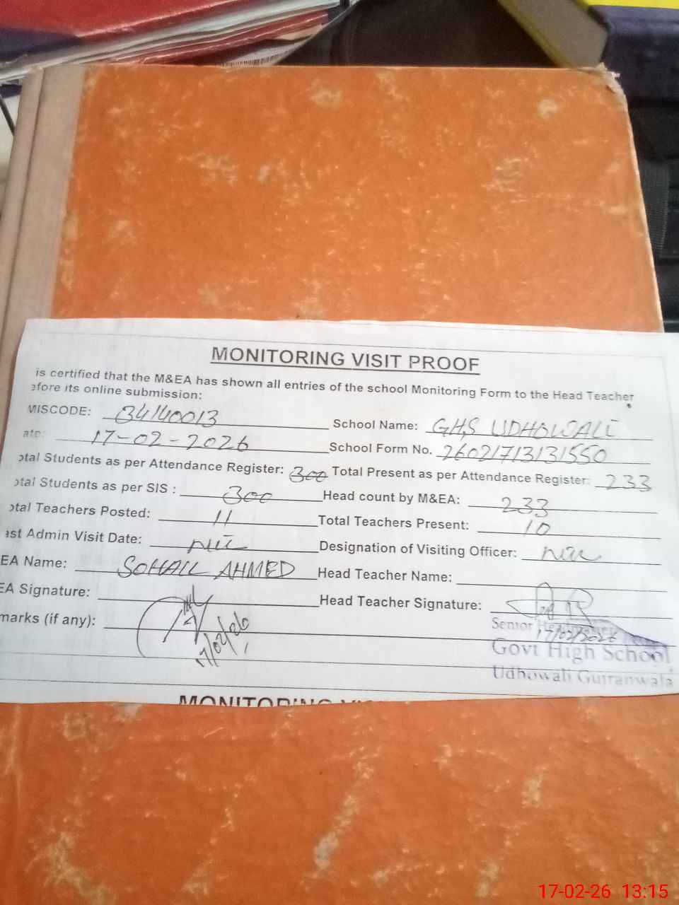 | EMIS Code: 34140013 | Name of School: GHS UDHOWALI | |||