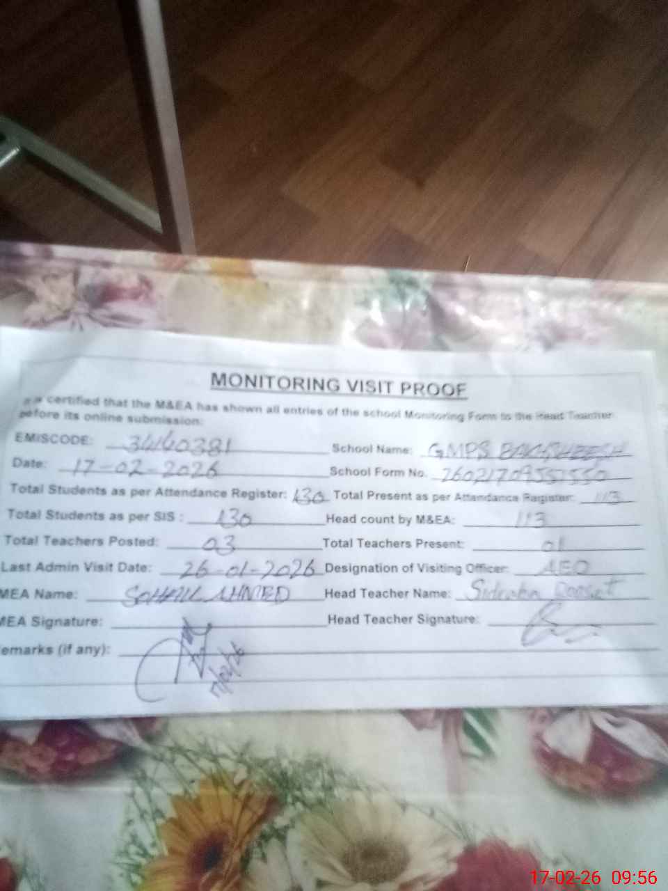 | EMIS Code: 34140381 | Name of School: GMPS BAKHSHEESH PURA | |||
