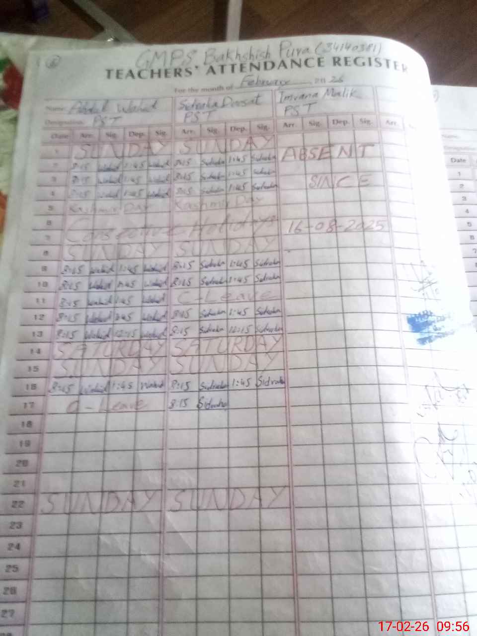 | 34**** | Im**** Ma**** | PST Science/Maths | Regular | 0 | 0 | 0 | 0 | 0 | 0 | 0 | 0 | 0 | Absent (Un-Authorized) |