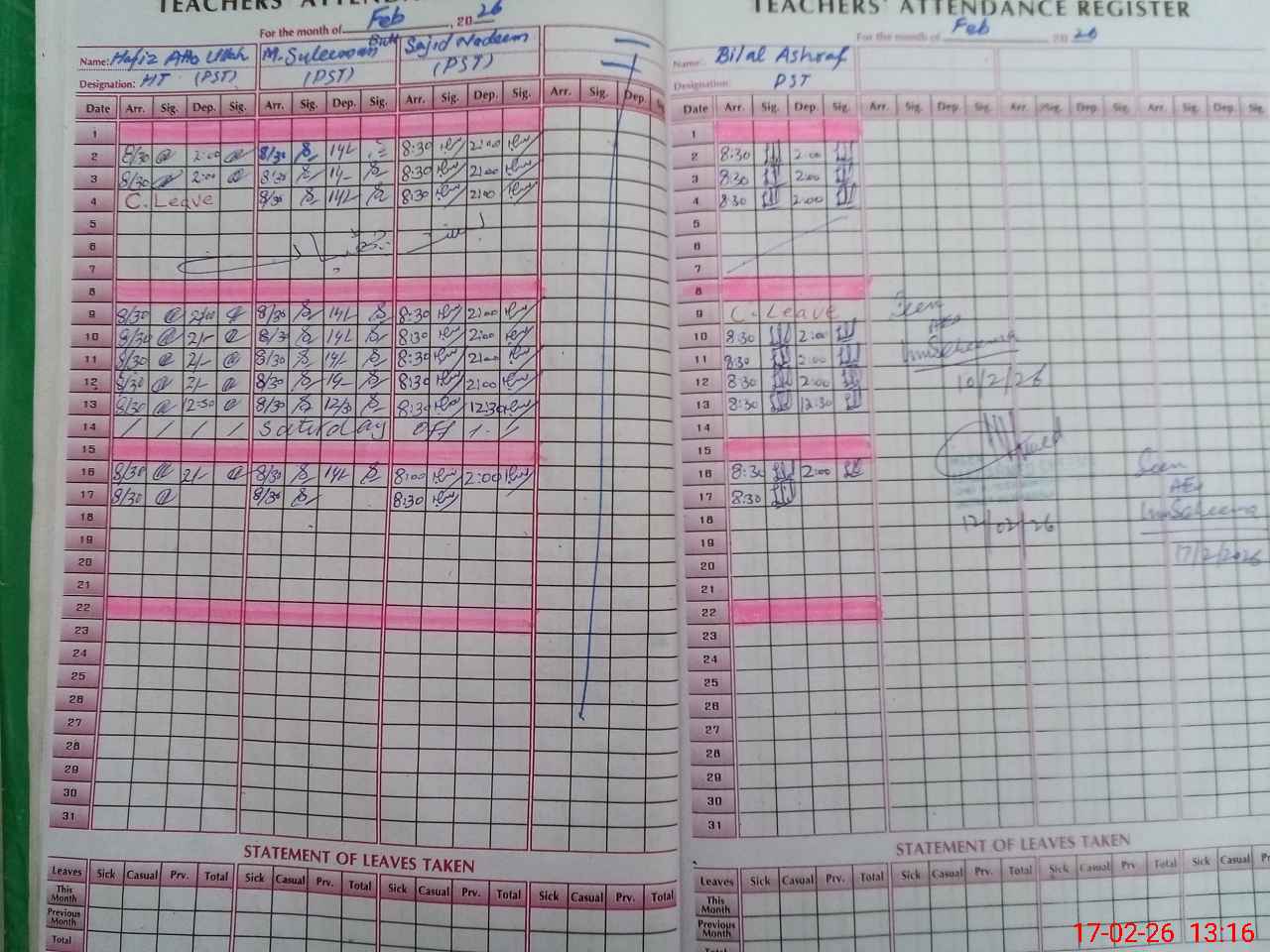 | Name: HA**** AT**** UL**** Designation: (School Headmaster's/Headmistress's) PST/PTC/JV Phone/Cell Number: 03**** |