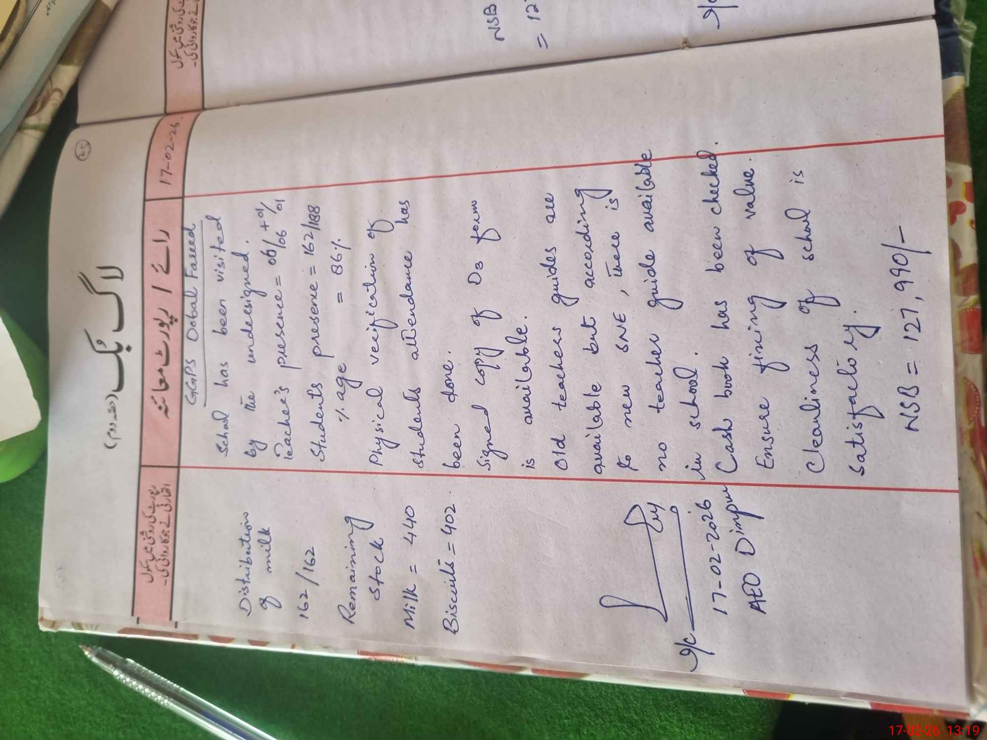 | Attendance Register | Head Teacher | MEA with School | Visit Proof |