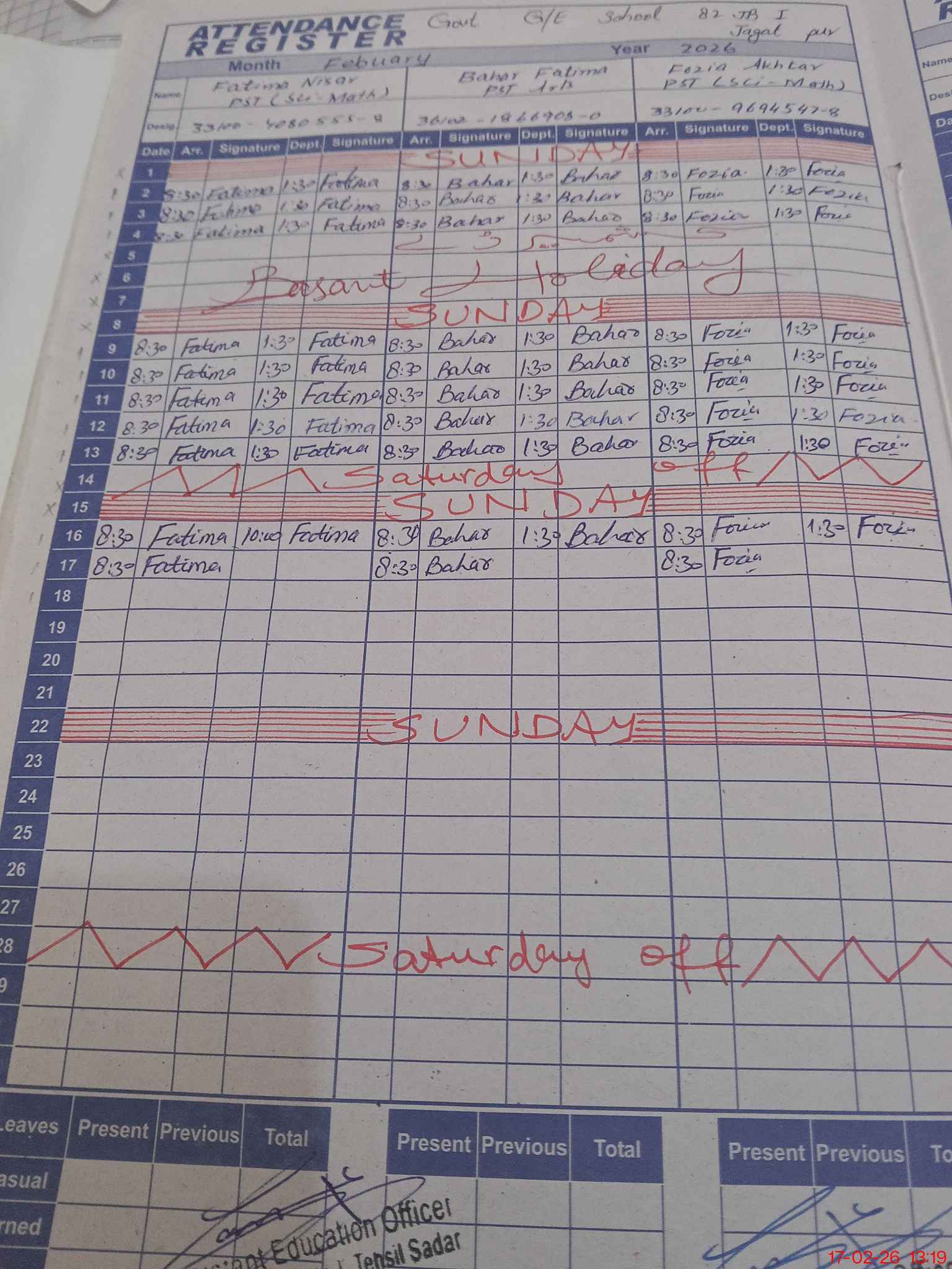 | Name: Ba**** Fa**** Designation: (School Headmaster's/Headmistress's) PST Phone/Cell Number: 03**** |