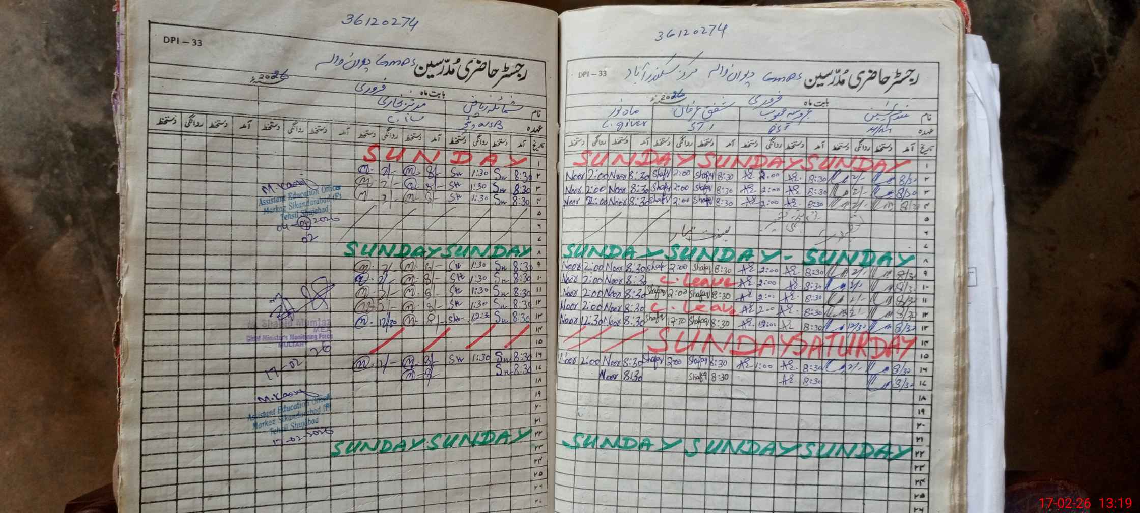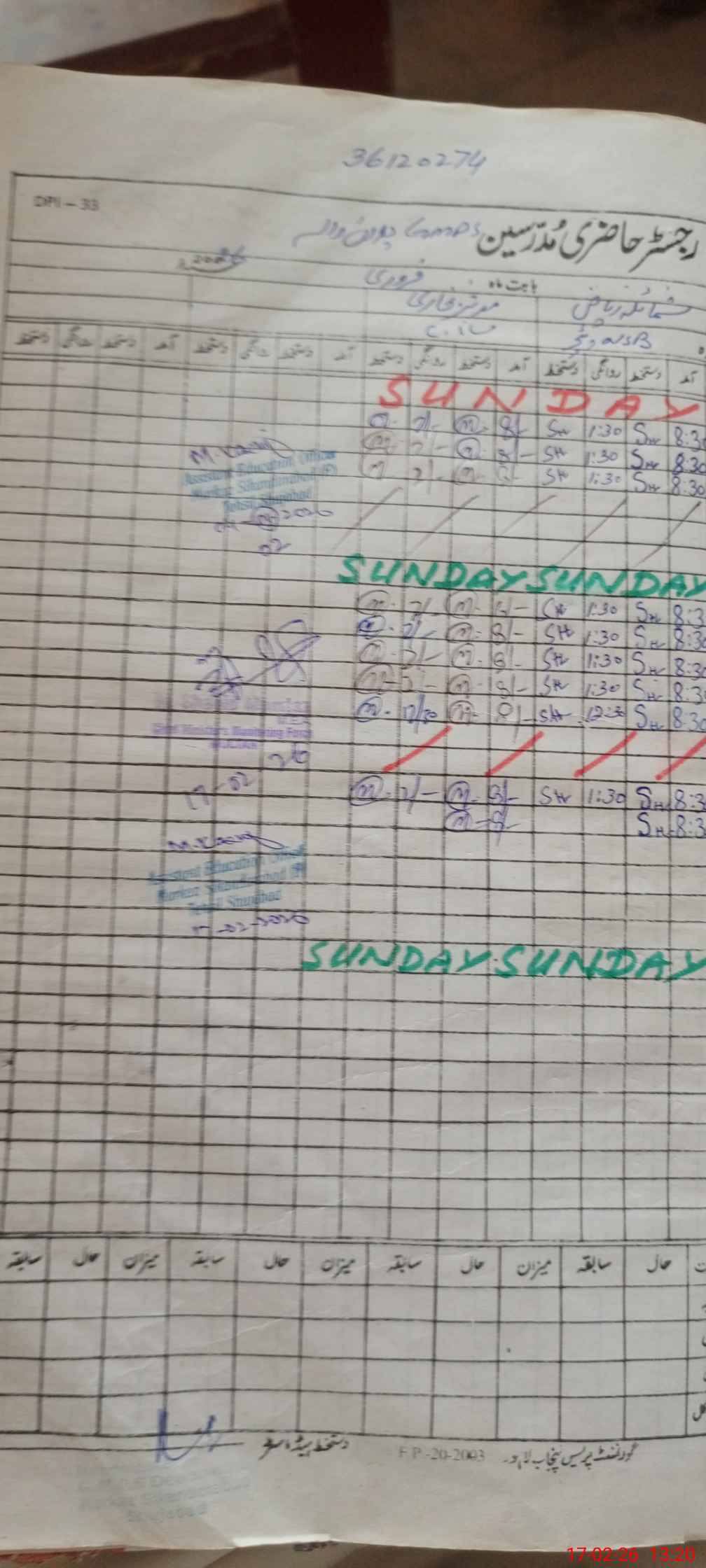 | CNIC | Full Name | Designation | R/C | Absence During Last Calender Month |