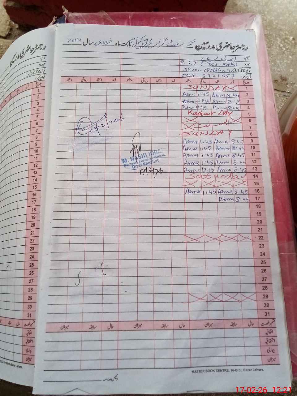 | Name: Ro**** Kh**** Designation: (School Headmaster's/Headmistress's) PST Phone/Cell Number: 03**** |