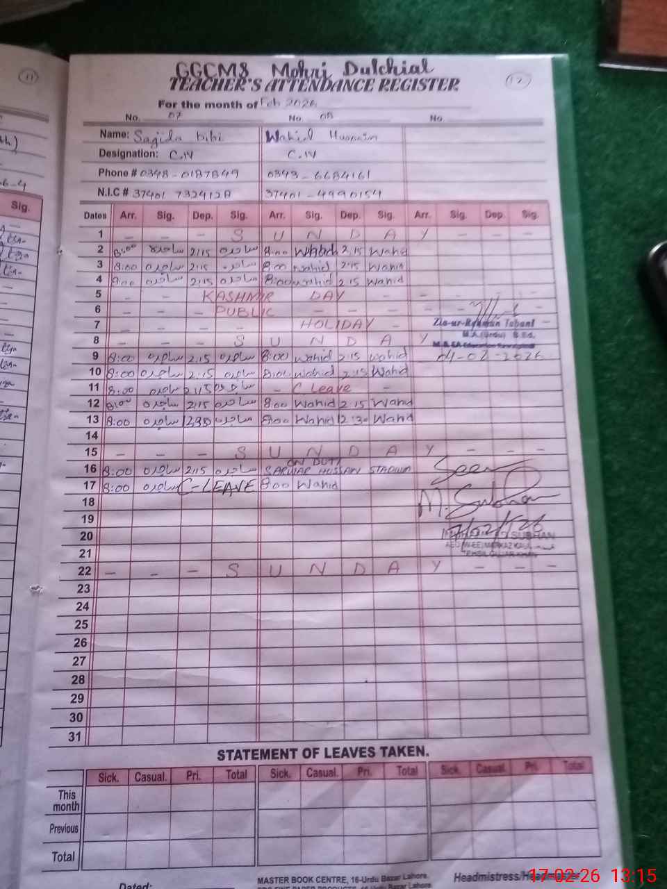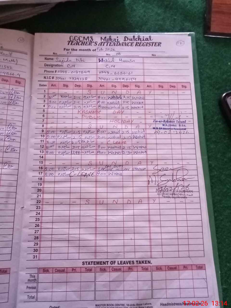 | 37**** | Ma**** Kh**** | PST Arts | Regular | 0 | 0 | 0 | 0 | 0 | 0 | 0 | 0 | 0 | Maternity |