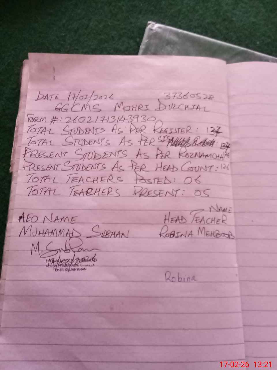 | EMIS Code: 37360528 | Name of School: GGCMS MOHRI DULCHIAL | |||