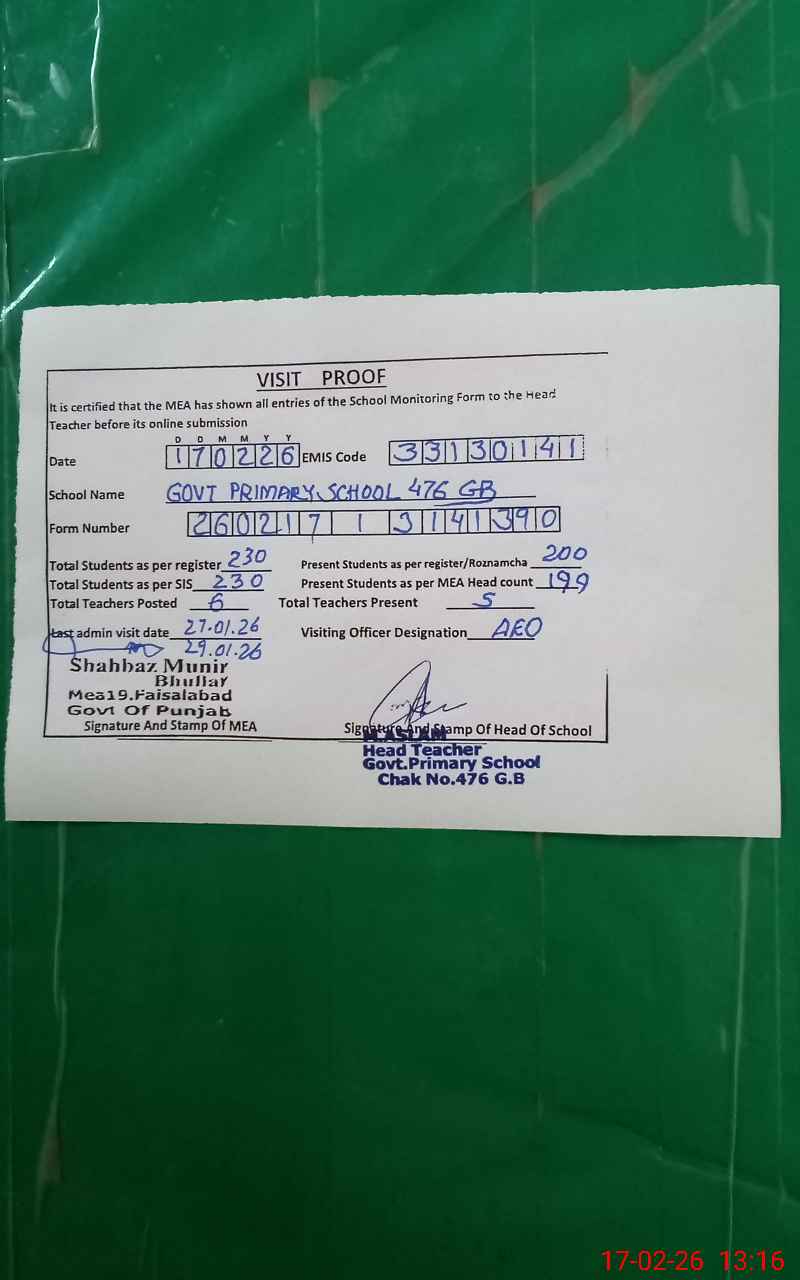 | EMIS Code: 33130141 | Name of School: GPS 476 GB | |||