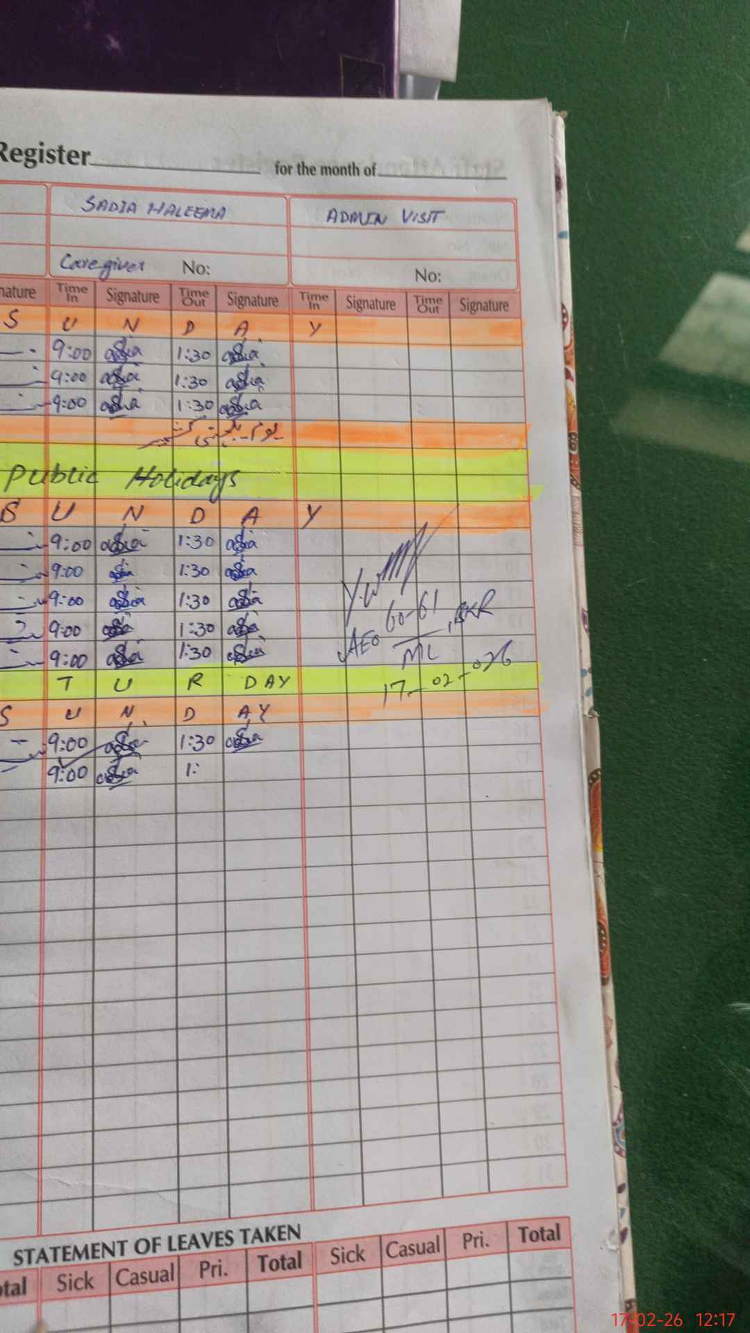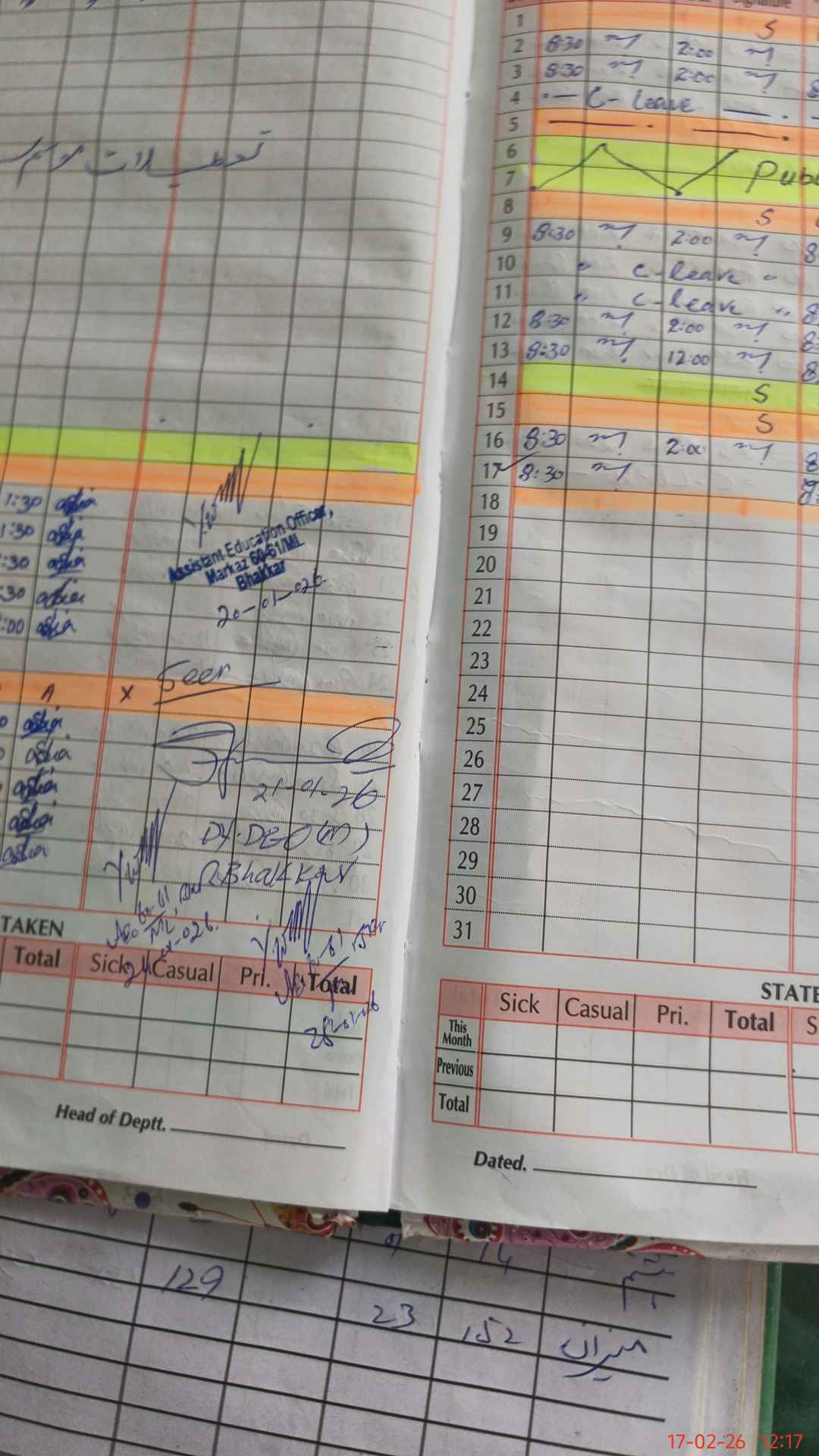 | Leave | Duty | Absent | Maternity | Medical | Ex- Pak |