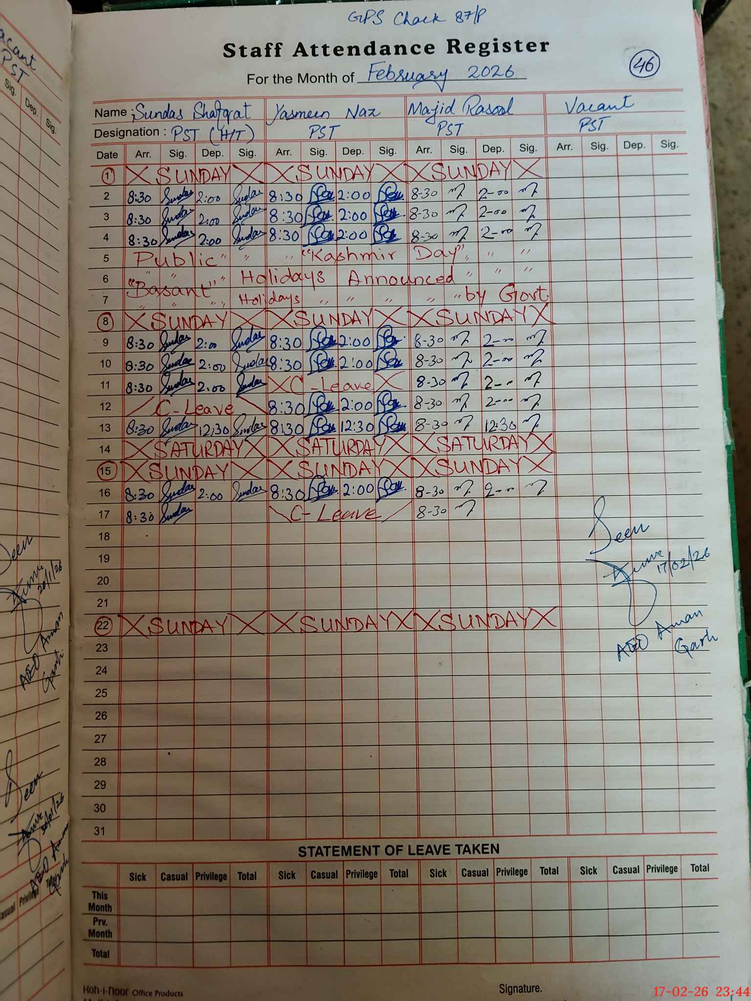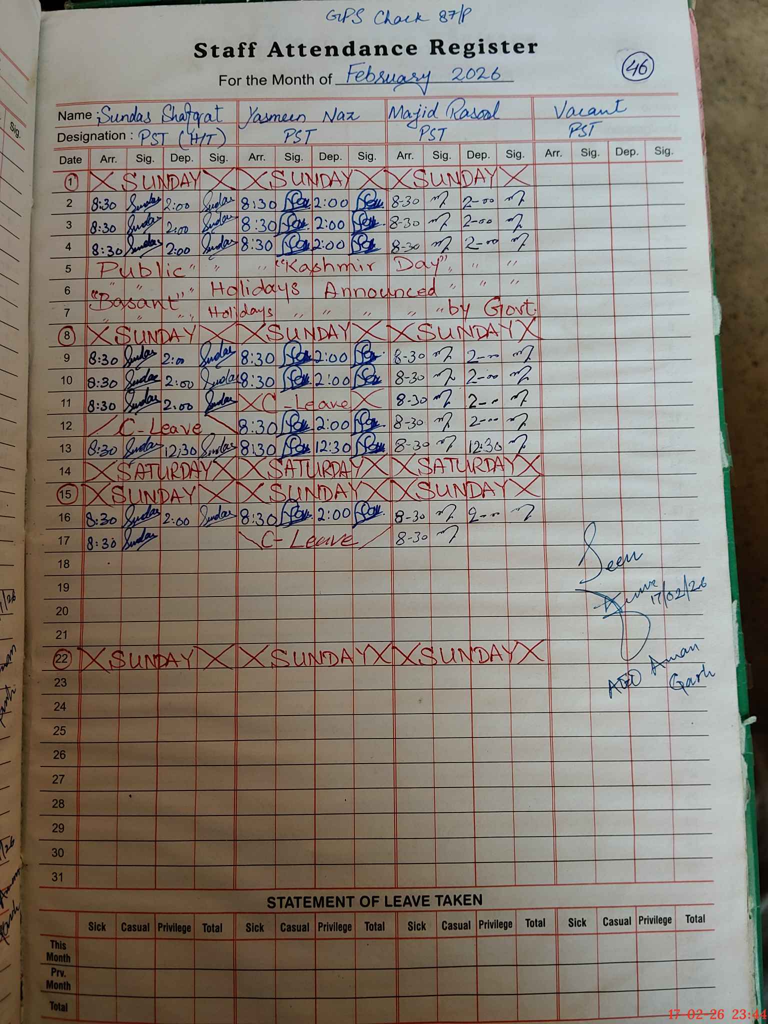 | Name: SU**** SH**** Designation: (School Headmaster's/Headmistress's) PST Phone/Cell Number: 03**** |