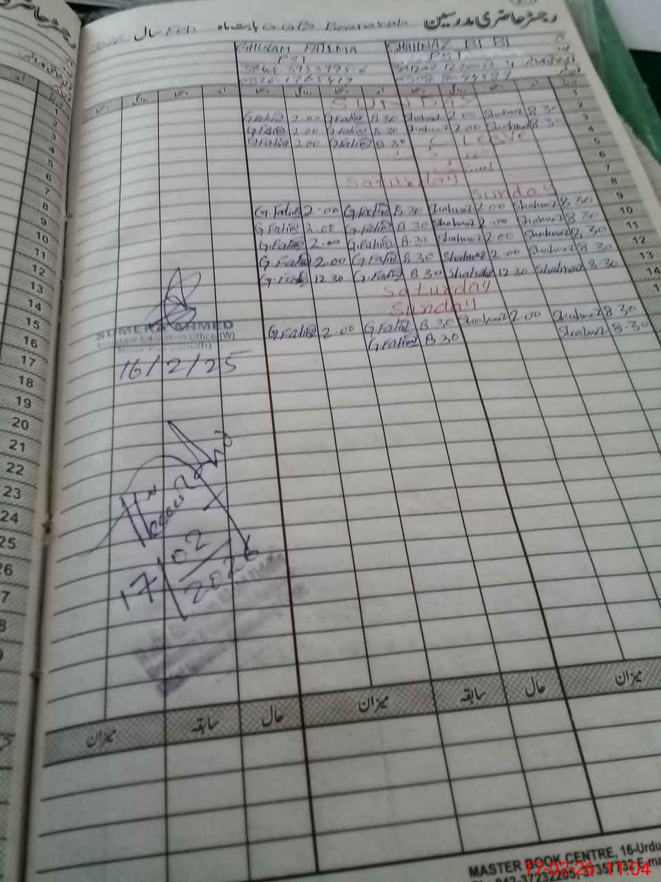 | CNIC | Full Name | Designation | R/C | Absence During Last Calender Month |
