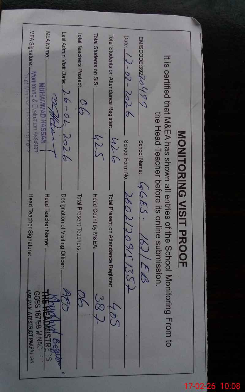 | EMIS Code: 39220499 | Name of School: GGES CHAK NO.167 EB | |||