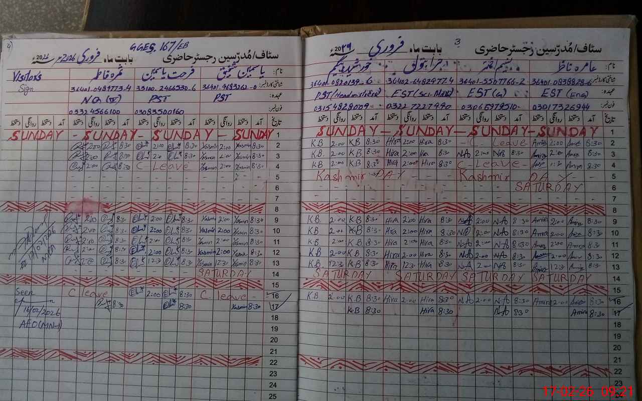 | Name: KH**** BE**** Designation: (School Headmaster's/Headmistress's) PST Phone/Cell Number: 03**** |