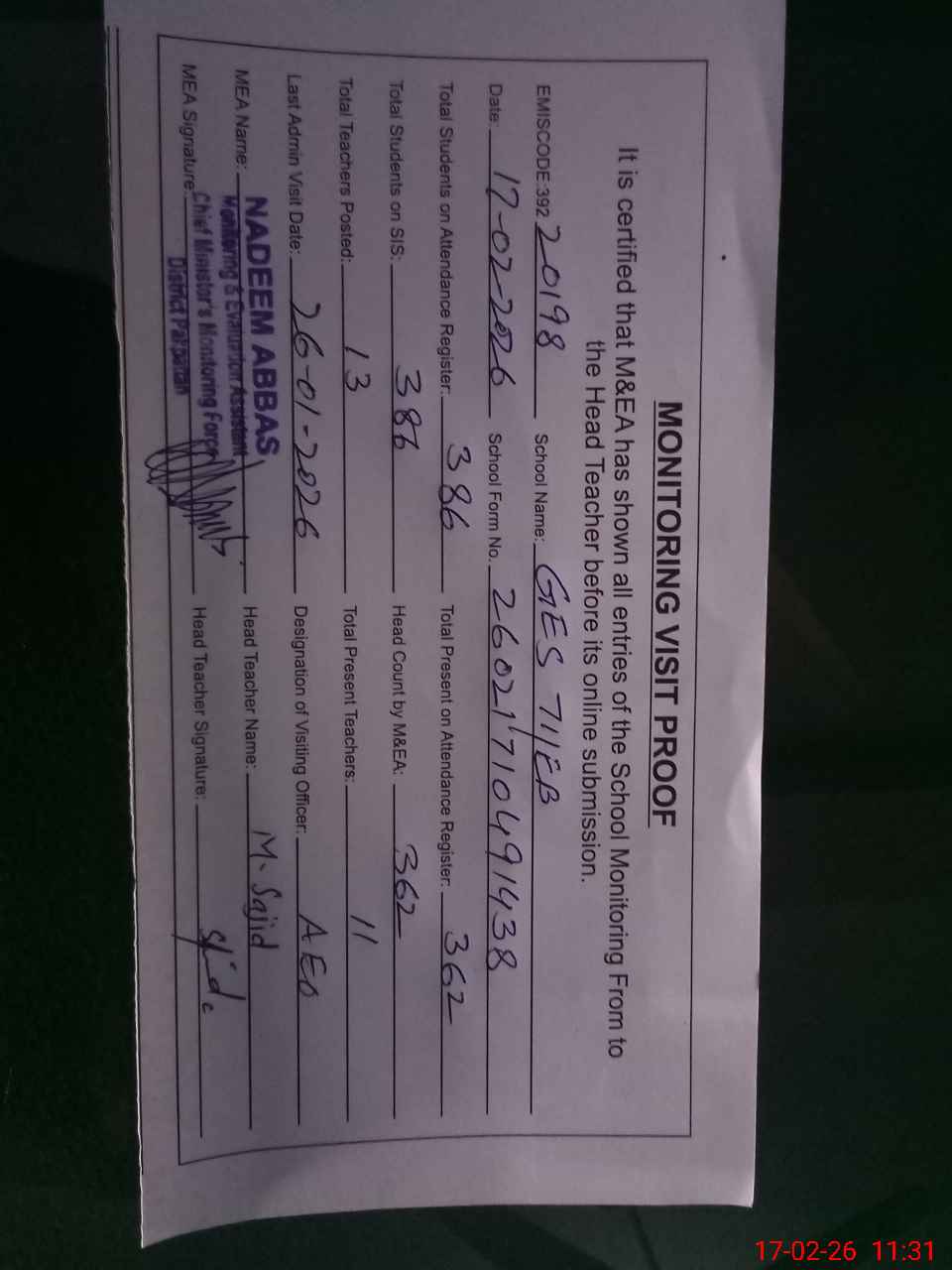 | Certified that this School was Inspected by the Undersigned MEA/DMO Today and the Information Stated Above is as Per Record. | |||||