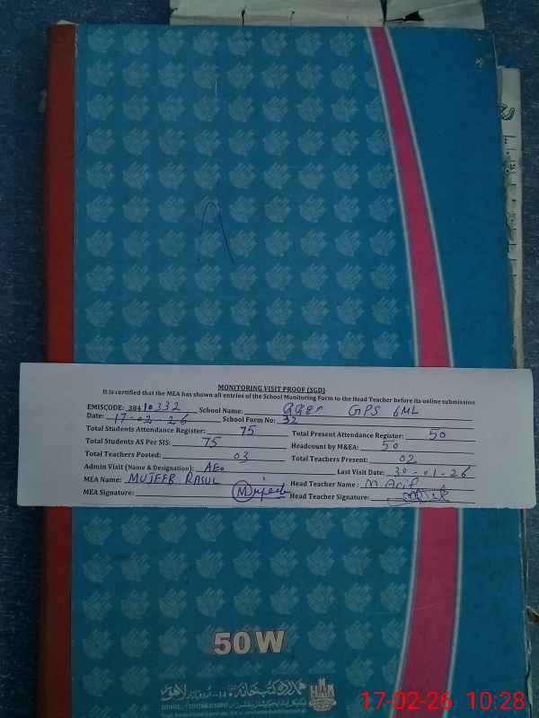 | Attendance Register | Head Teacher | MEA with School | Visit Proof |
