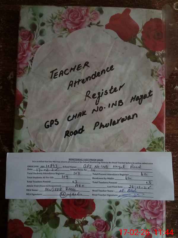 | EMIS Code: 38410843 | Name of School: GPS CHAK NO.1 NB HAYAT ROAD PHULARWAN | |||