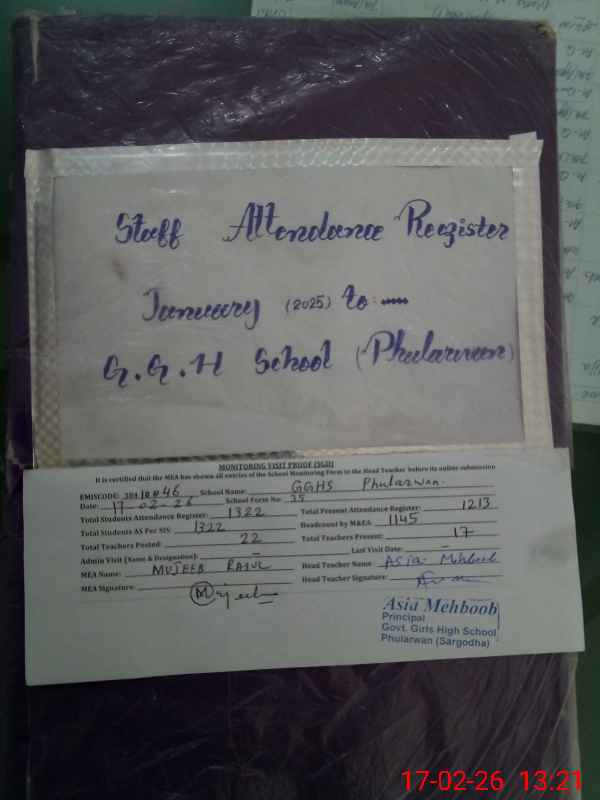 | EMIS Code: 38410046 | Name of School: GGHS PHULARWAN | |||