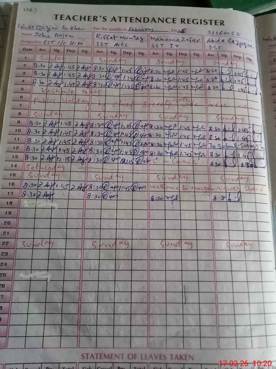 | Name: Ze**** An**** Designation: (School Headmaster's/Headmistress's) I/C Head Mistress Phone/Cell Number: 03**** |