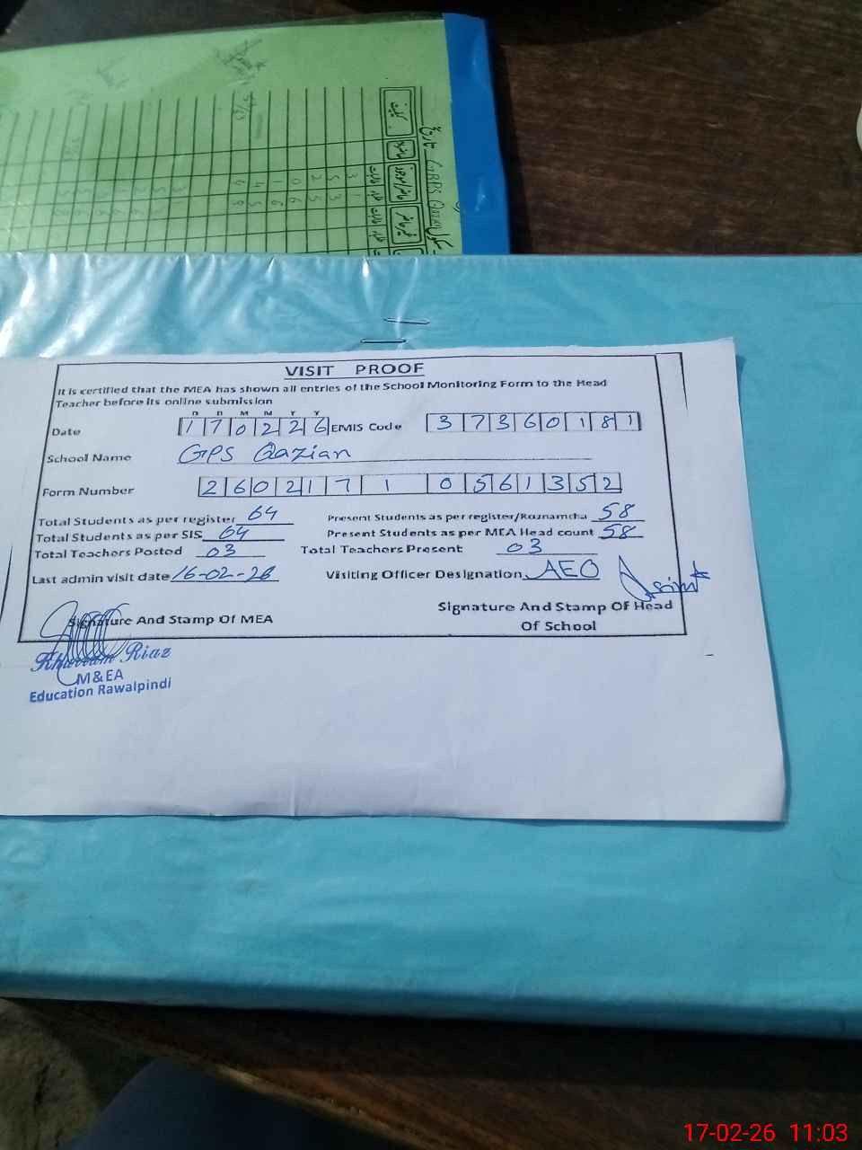 | EMIS Code: 37360181 | Name of School: GPS QAZIAN | |||