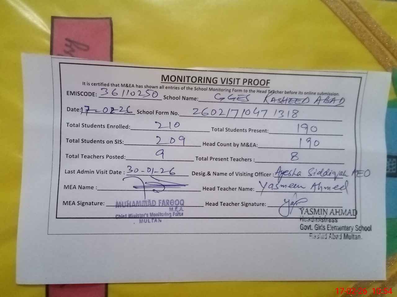 | EMIS Code: 36110250 | Name of School: GGES RASHEED ABAD | |||
