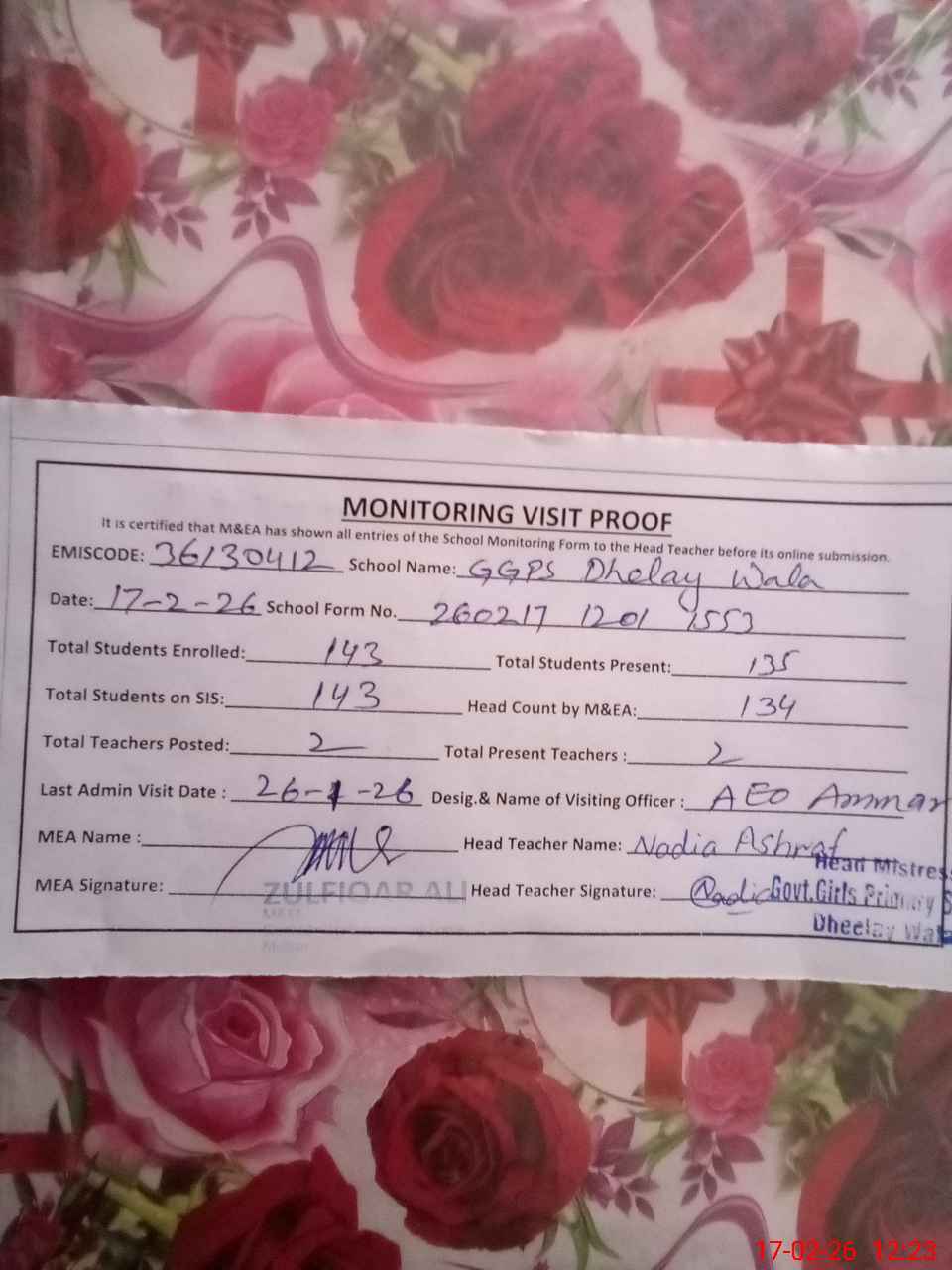 | EMIS Code: 36130412 | Name of School: GGPS DHELAY WALA QADIRPUR RAN MULTAN | |||
