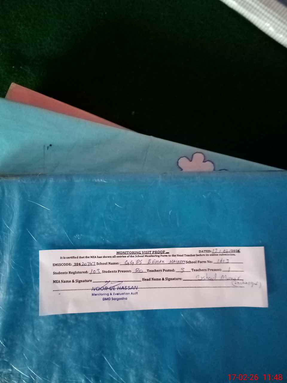 | EMIS Code: 38420747 | Name of School: GGPS BEHAK MAIKEN | |||