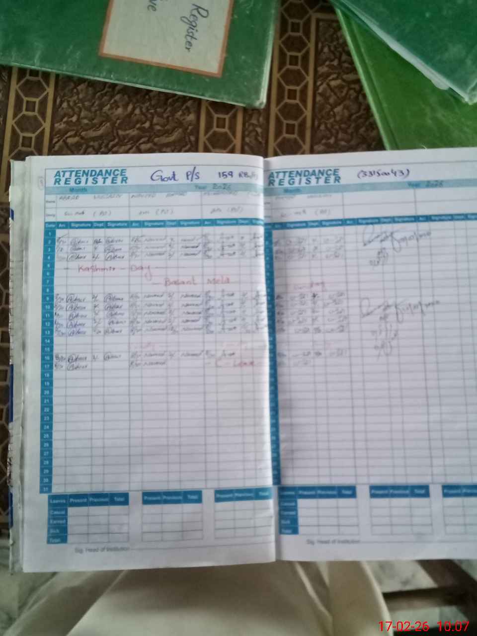 | Attendance Register | Head Teacher | MEA with School | Visit Proof |