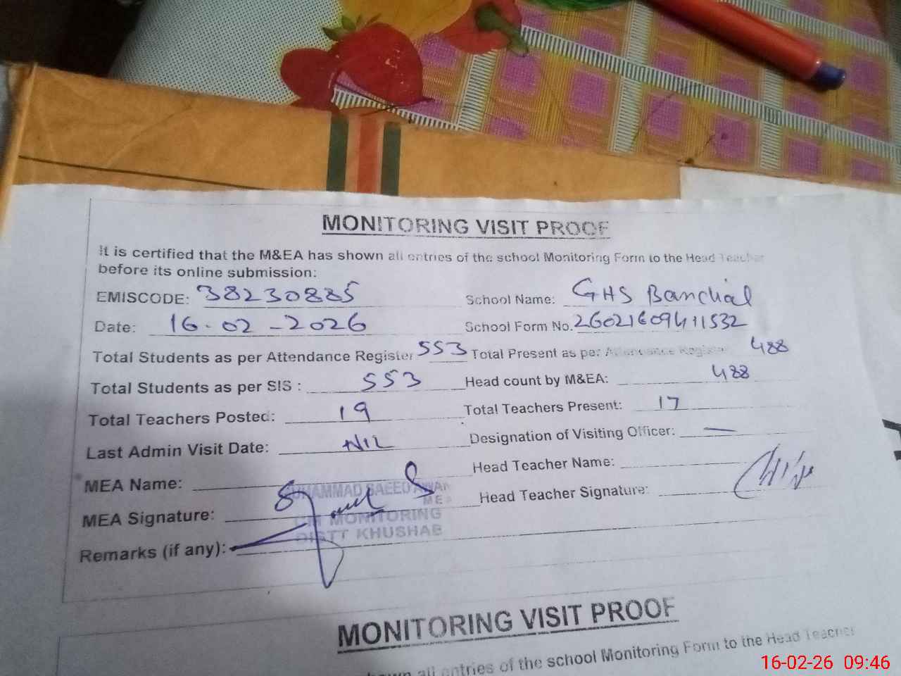 | EMIS Code: 38230885 | Name of School: GHS BANDIAL | |||
