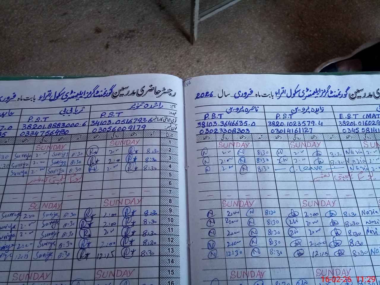 | CNIC | Full Name | Designation | R/C | Absence During Last Calender Month |