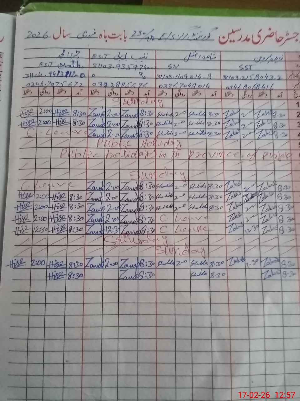 | Name: Za**** Pa**** Designation: (School Headmaster's/Headmistress's) S.S.T.(GEN Phone/Cell Number: 03**** |