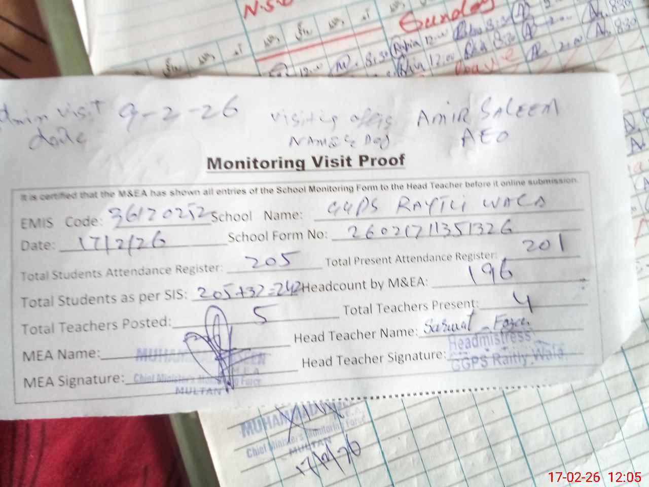 | EMIS Code: 36120252 | Name of School: GGPS RAYTLI WALA CHAH RATLI WALA SHUJABAD | |||