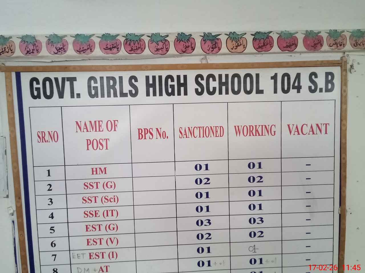 | EMIS Code: 38420204 | Name of School: GGHS CHAK NO.104 SB | |||