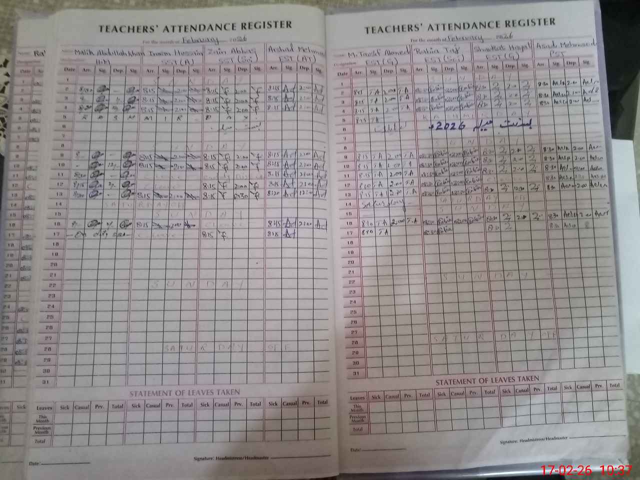 | 37**** | Ma**** Ab**** Kh**** | HEADMASTER | Regular | 0 | 0 | 0 | 0 | 0 | 0 | 0 | 0 | 0 | Absent (Un-Authorized) |