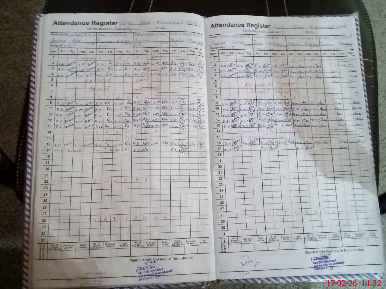 | CNIC | Full Name | Designation | R/C | Absence During Last Calender Month |