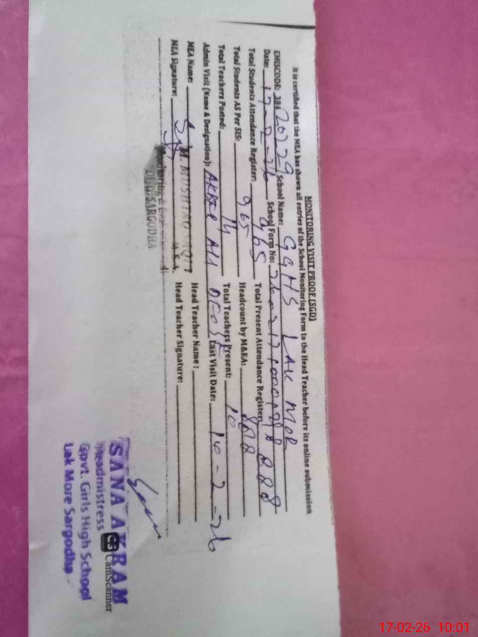 | EMIS Code: 38420229 | Name of School: GGHS LAK MORE | |||