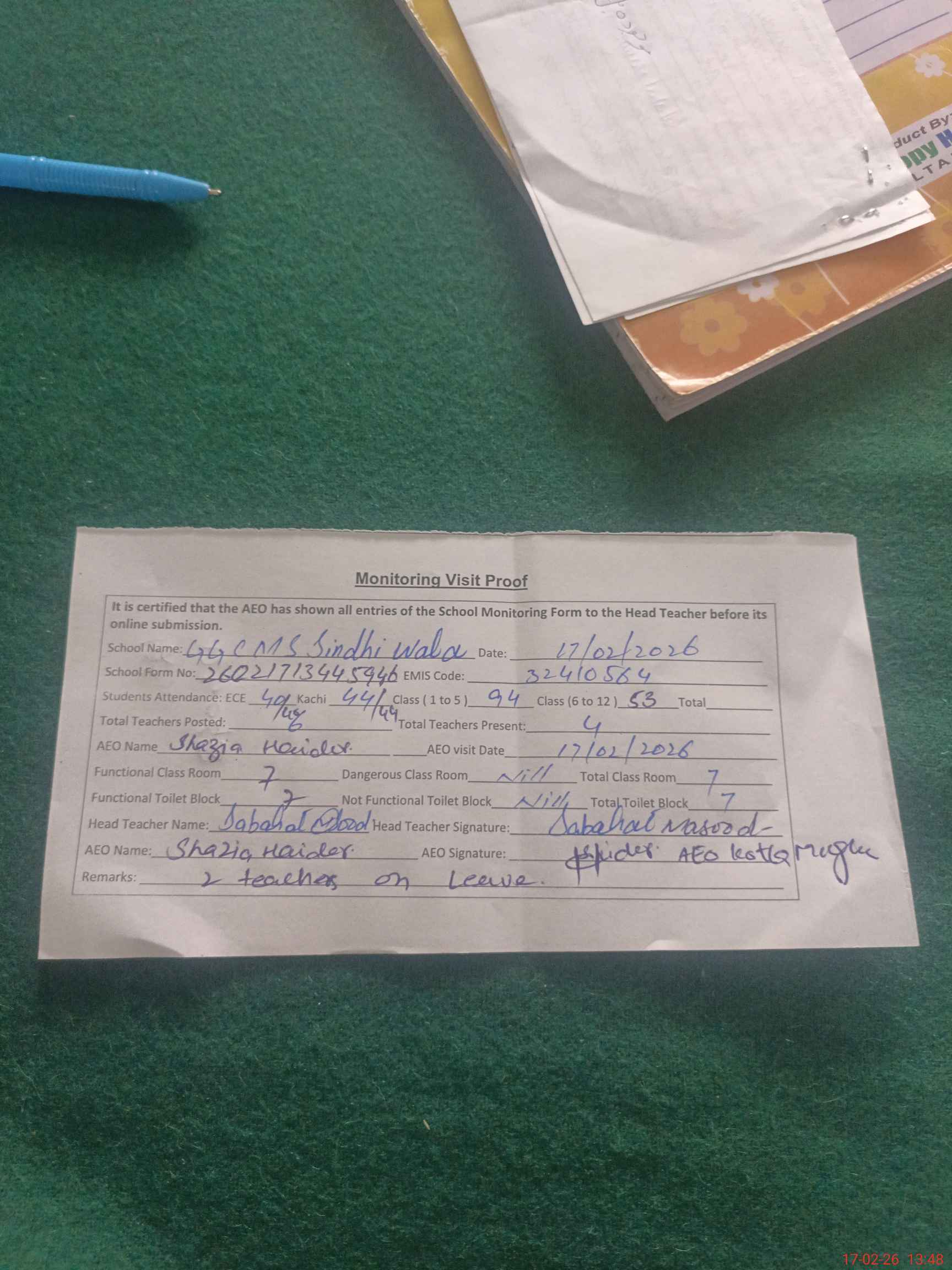 | EMIS Code: 32410564 | Name of School: GGCMS SINDHI WALA | |||