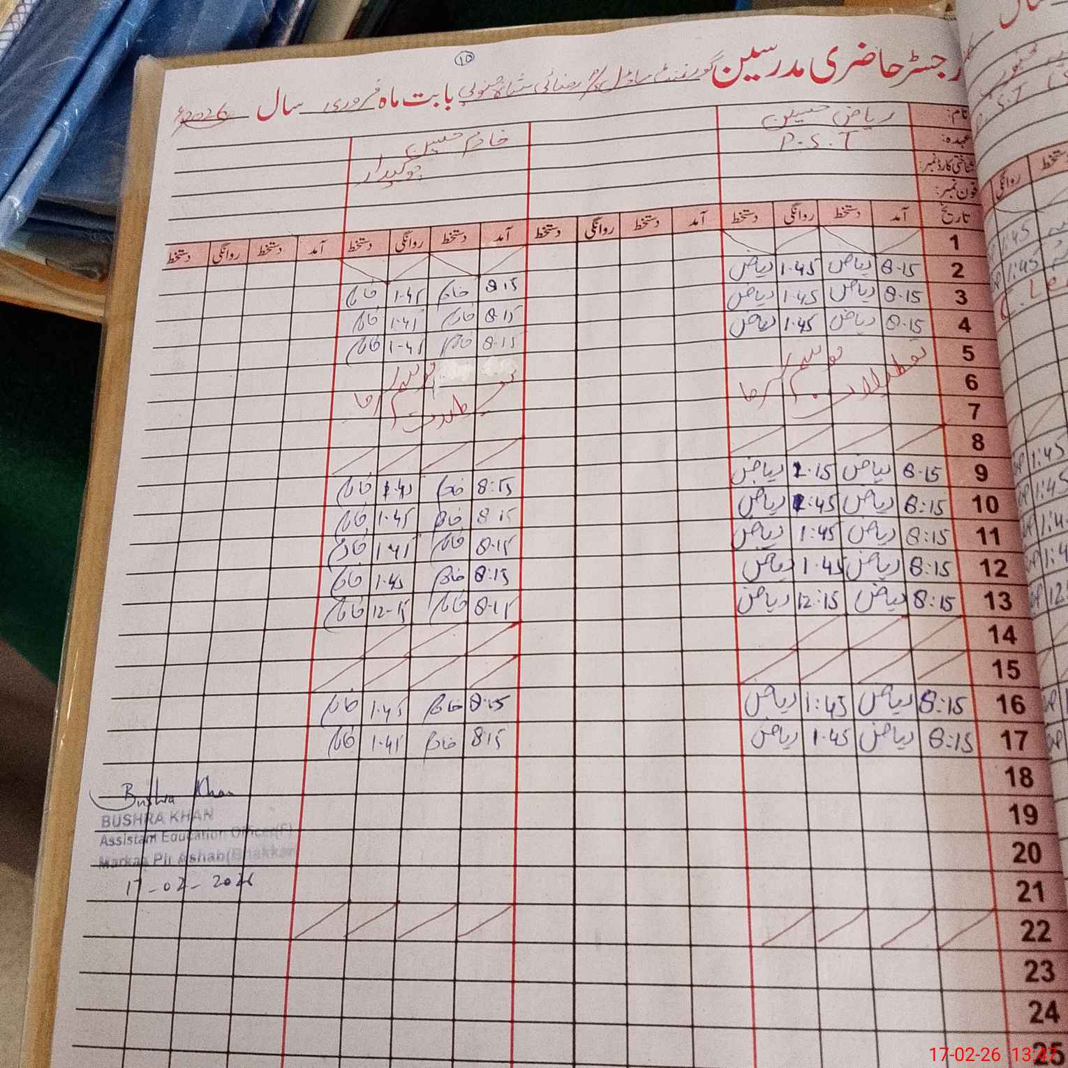 | District: BHAKKAR | Tehsil: BHAKKAR | Markaz: PIR ASHAB - FEMALE | Level: Primary | |