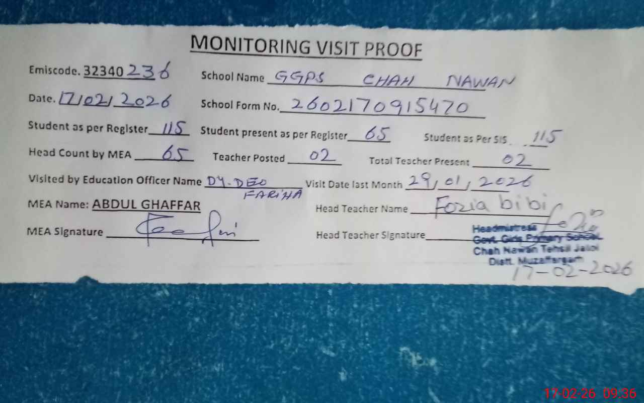 | EMIS Code: 32340236 | Name of School: GGPS CHAH NAWAN | |||