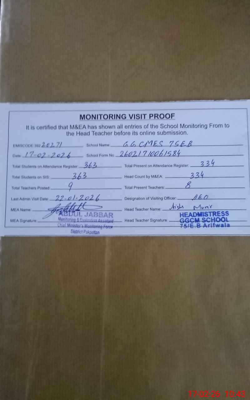 | EMIS Code: 39220271 | Name of School: GGCMES 75 EB | |||