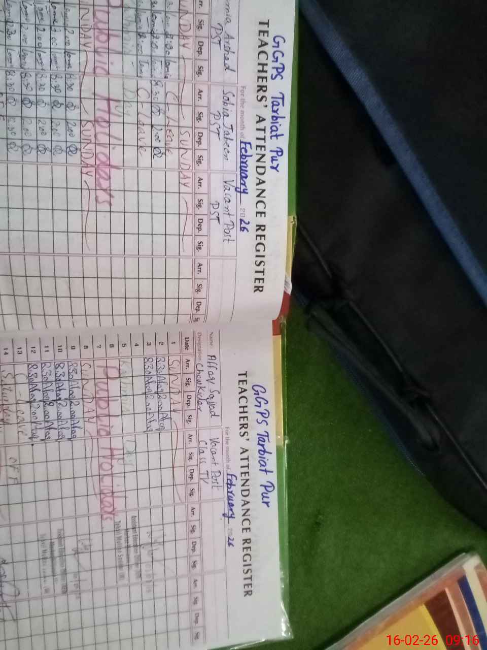 | CNIC | Full Name | Designation | R/C | Absence During Last Calender Month |