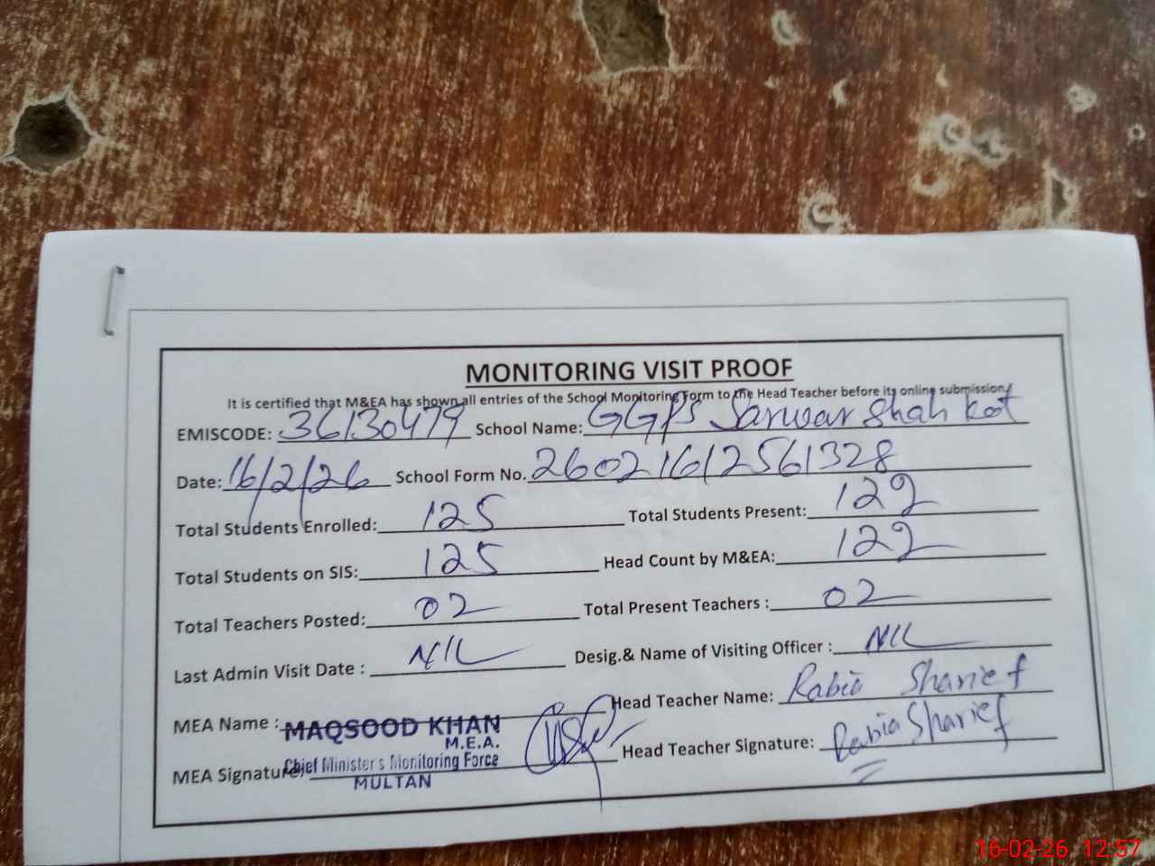 | EMIS Code: 36130479 | Name of School: GGPS SARWAR SHAH KOT | |||