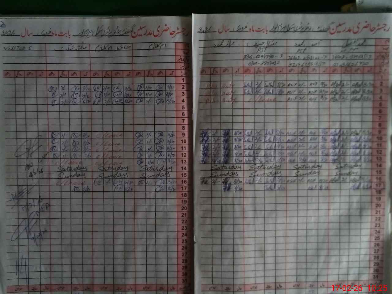 | CNIC | Full Name | Designation | R/C | Absence During Last Calender Month |