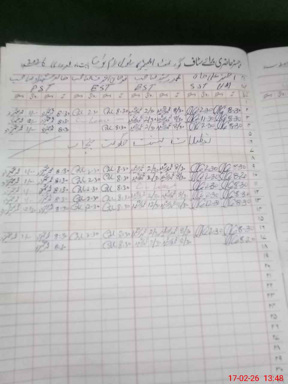 | 35**** | Ma**** Kh**** | PST Science/Maths | Regular | 2 | 0 | 0 | 0 | 0 | 0 | 0 | 0 | 2 | Casual |