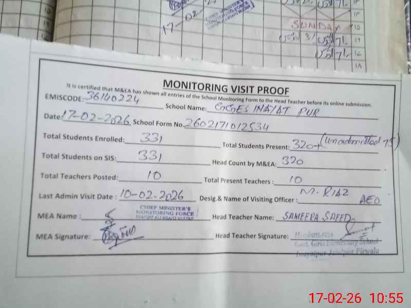 | EMIS Code: 36140224 | Name of School: GGES INAYAT PUR | |||