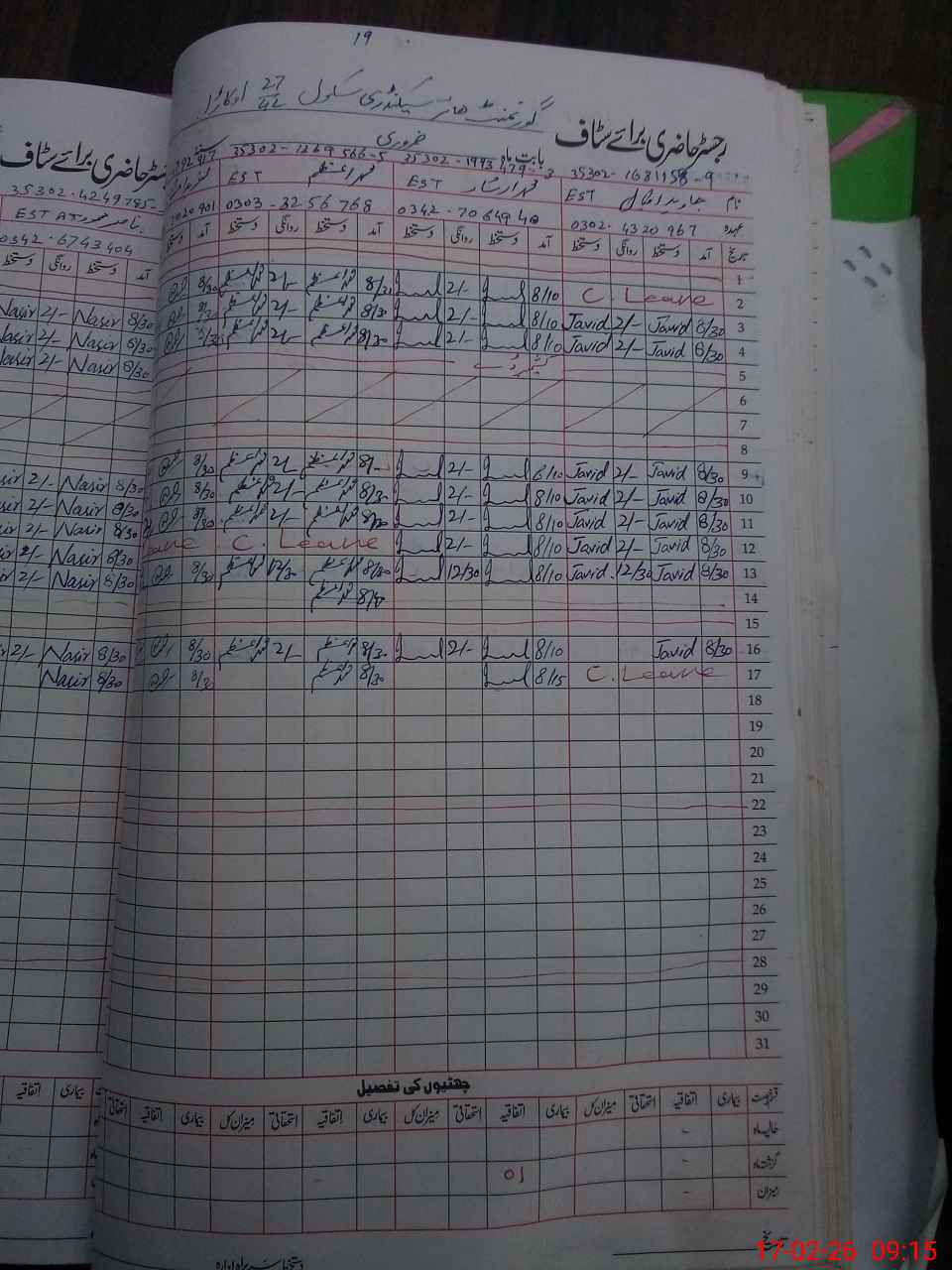 | CNIC | Full Name | Designation | R/C | Absence During Last Calender Month |